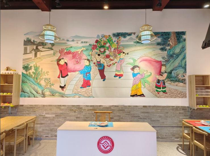 ---内设展馆5间(面雕馆、五谷馆、花馍馆、蒸馍馆,花馍壁画馆),研学馆2间,单场可同时容纳两百人参观及研学体验